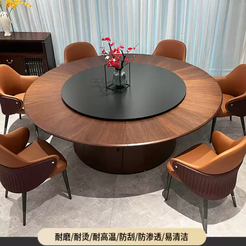 Modern Chinese Style Hotel Banquet Room Large Round Dining Table with Electric Turntable and Chairs for 20 People, Ideal for Home, Restaurant, and Conference Use