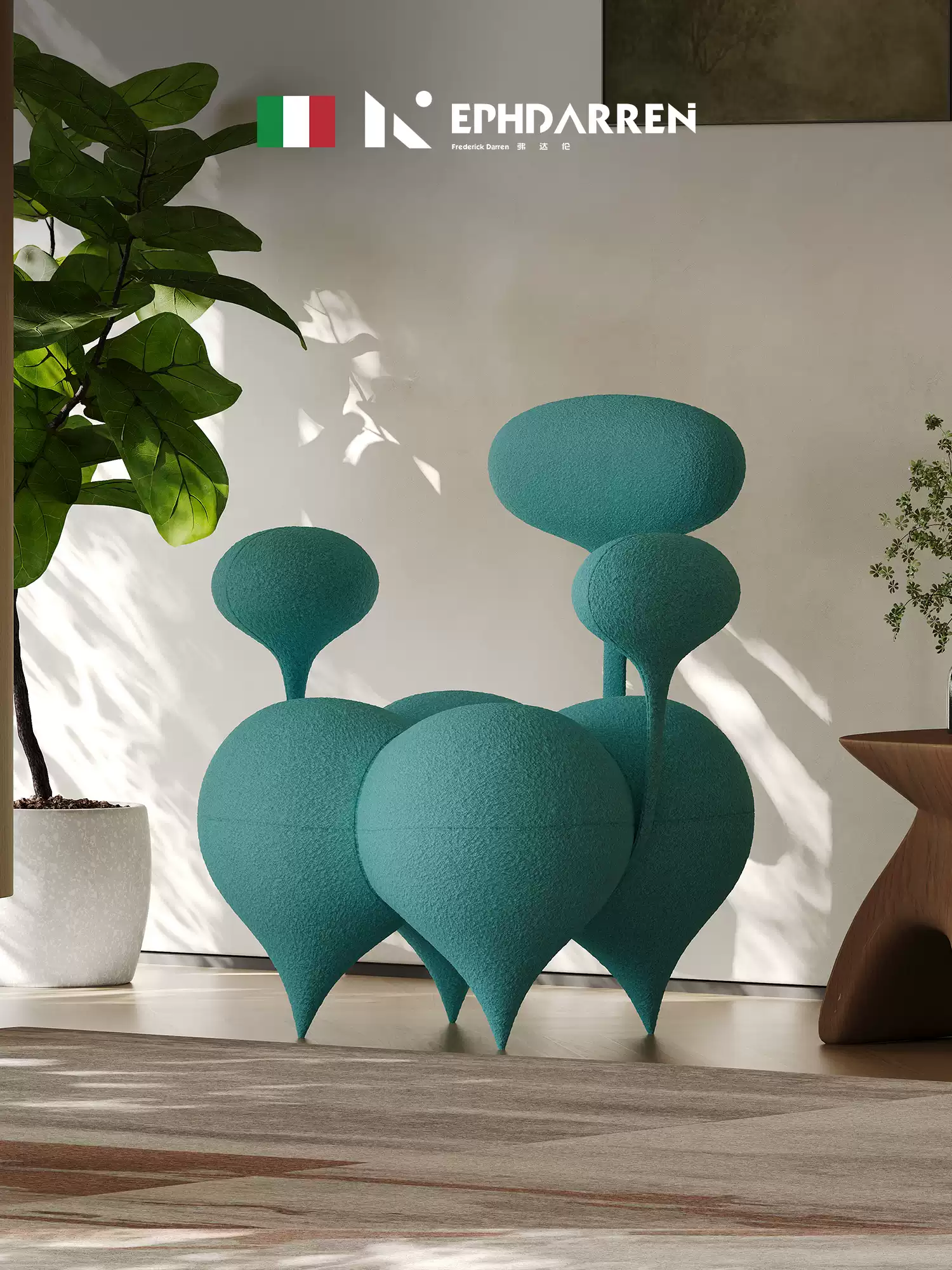 Toppinis Bubble Rocco Fabric Art Sofa – Creative Asymmetrical Design with Plush Bubble Ball Upholstery for Modern Living Room Decor