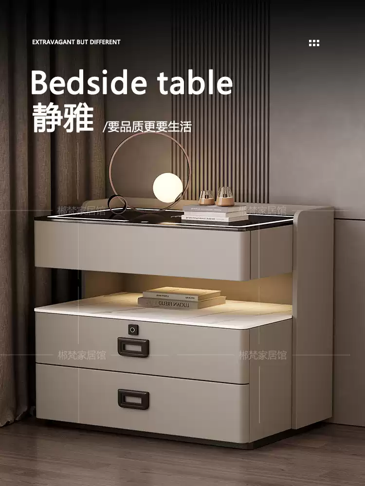 Modern Smart Bedside Cabinet with Multi-functional Three-Tier Design, Integrated Storage for Bedroom, Contemporary Minimalist Style with Light Luxury Feel, New Edition Bedside Table