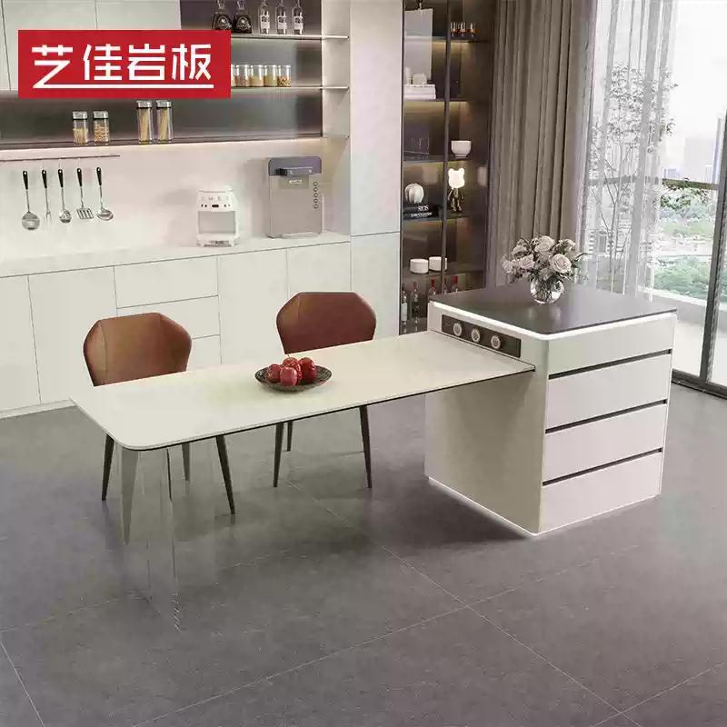 Modern Acrylic Rock Island Open Kitchen Dining Table with Floating Design and Integrated Bar Counter – Sleek and Versatile Centerpiece for Contemporary Homes