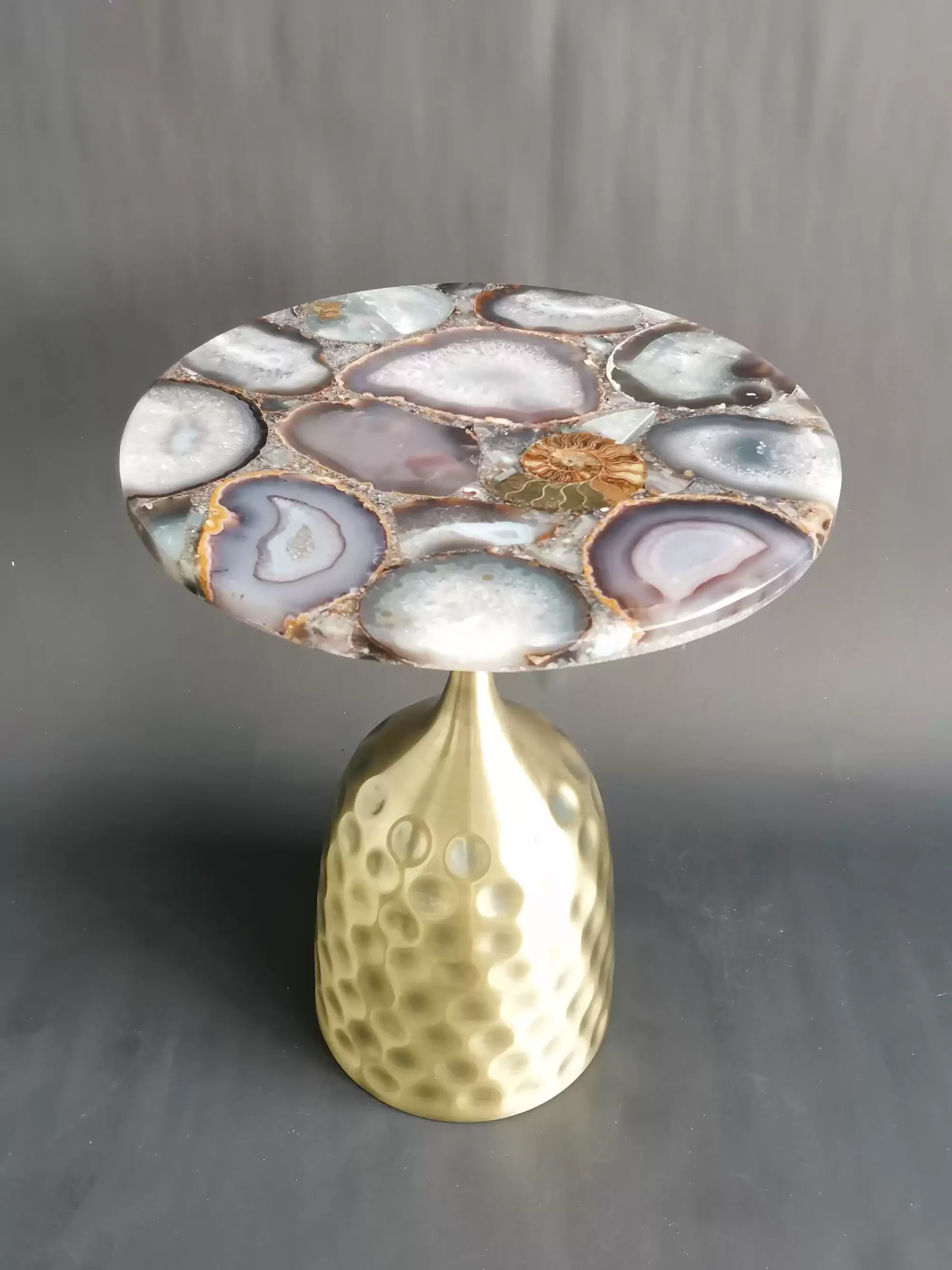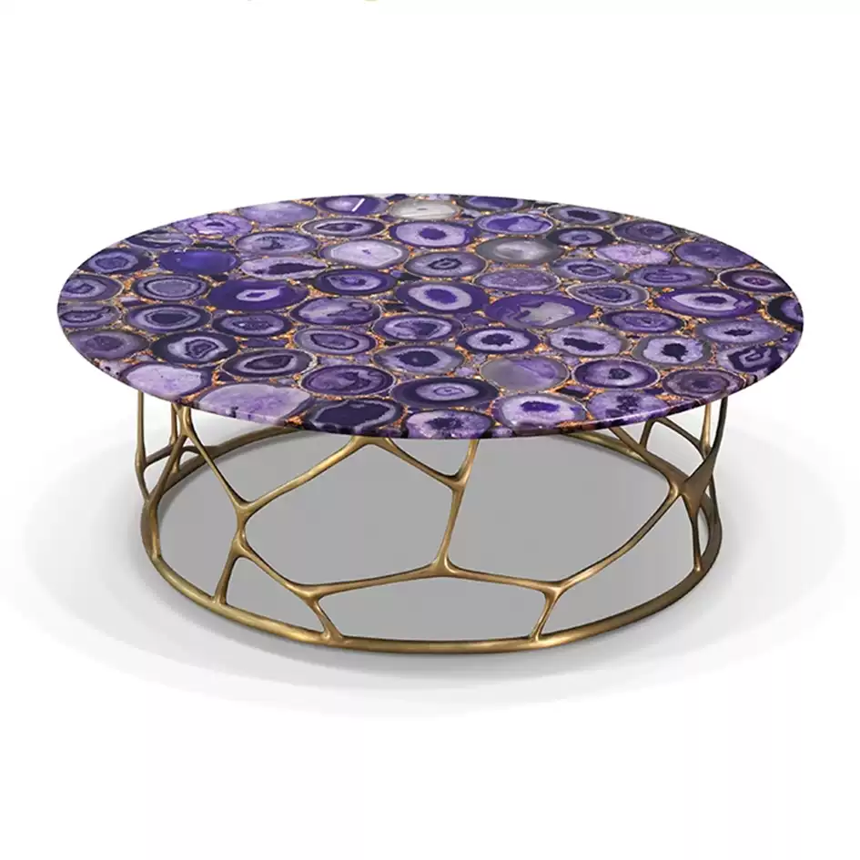 European Style Light Luxury Natural Purple Agate Jade Stone Forged Pure Copper Coffee Table Corner Geometric Tea Table for Living Room