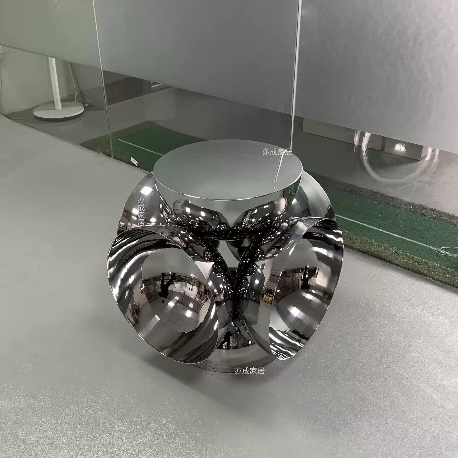 Modern 304 Stainless Steel Mirror Surface Sunlight Wheel Tea Table with Minimalist Art Design for Living Room and Sofa Corner
