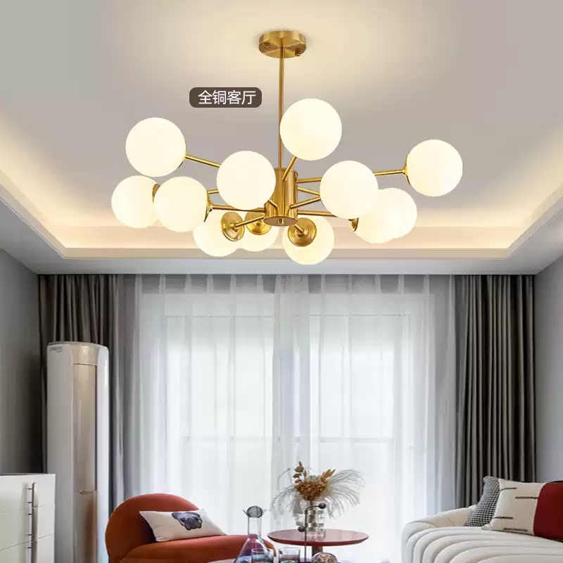Modern Chandelier with Molecular Design for Living Room and Dining Room, Full Copper Pendant Light Set, Elegant Lighting Fixture for Home Decor, Industrial Style Ceiling Lamp