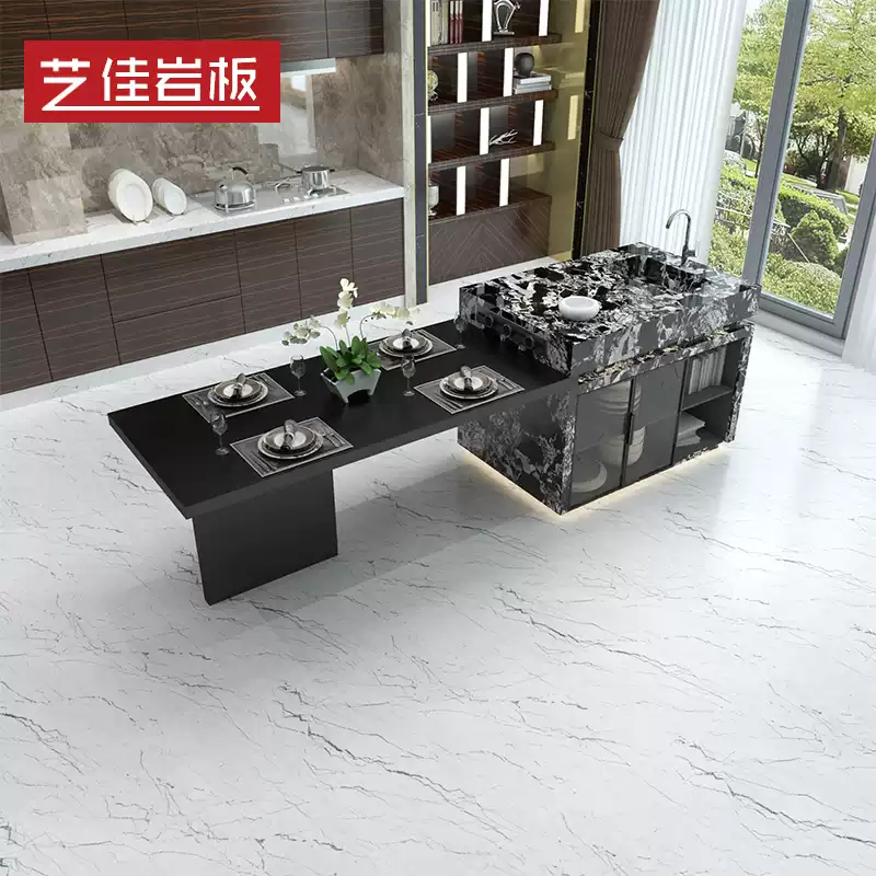 Customizable Luxury Kitchen Island Countertop with Extendable Dining Table in Natural Stone Finish, Open-Concept Design for Modern Homes, High-End Residential Kitchen Centerpiece