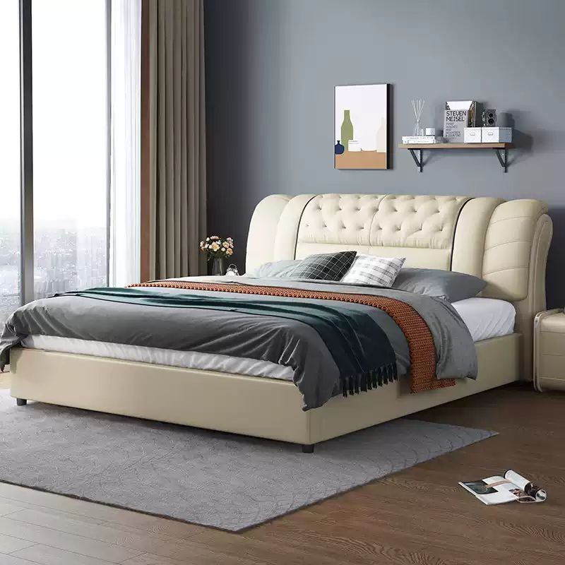 Modern Minimalist 1.5m Leather Bed Frame with Soft 1.8m Headboard, Ideal for Double Bedrooms and Contemporary Home Decor, Offering Luxury and Comfort in Sleek Design