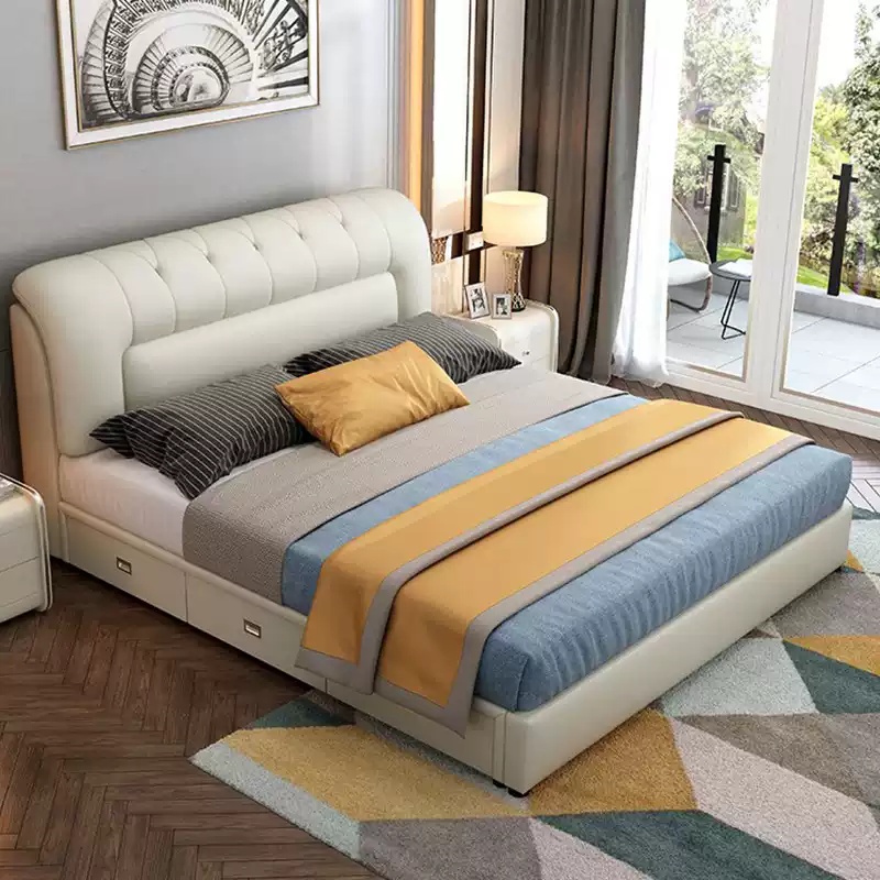 Modern Minimalist 1.5m Leather Bed Frame with Soft 1.8m Headboard, Ideal for Double Bedrooms and Contemporary Home Decor, Offering Luxury and Comfort in Sleek Design
