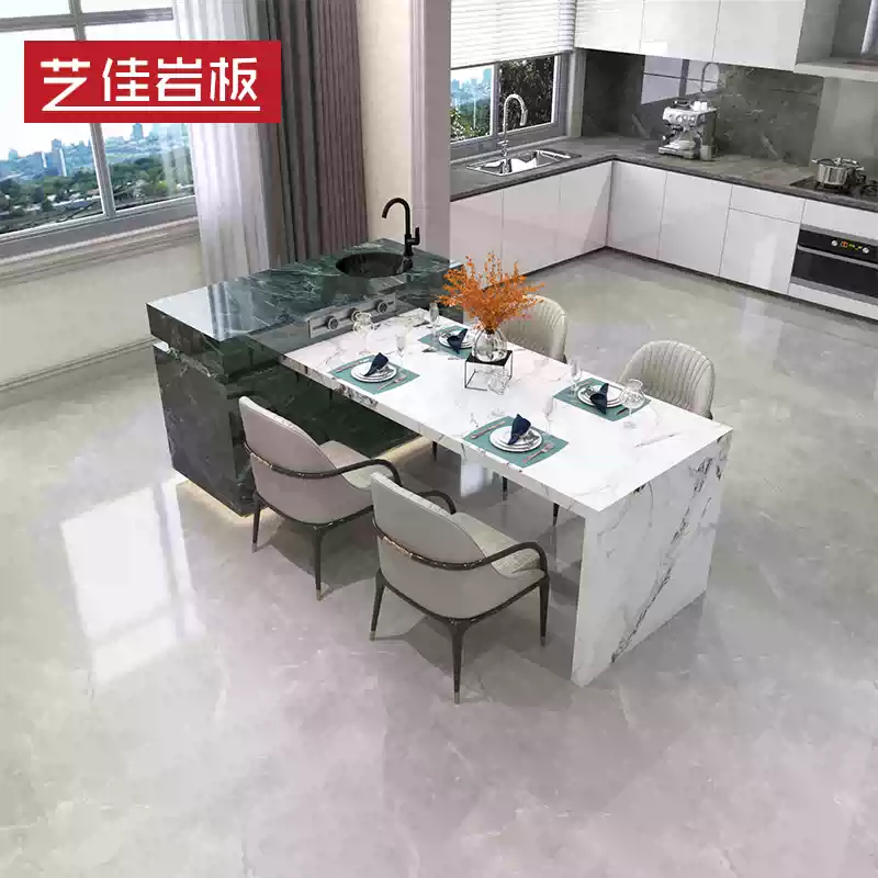 Modern Stone Dining Table with Customizable Island and Multi-Functional Storage Console – Large Household Bar Counter for Contemporary Living Spaces