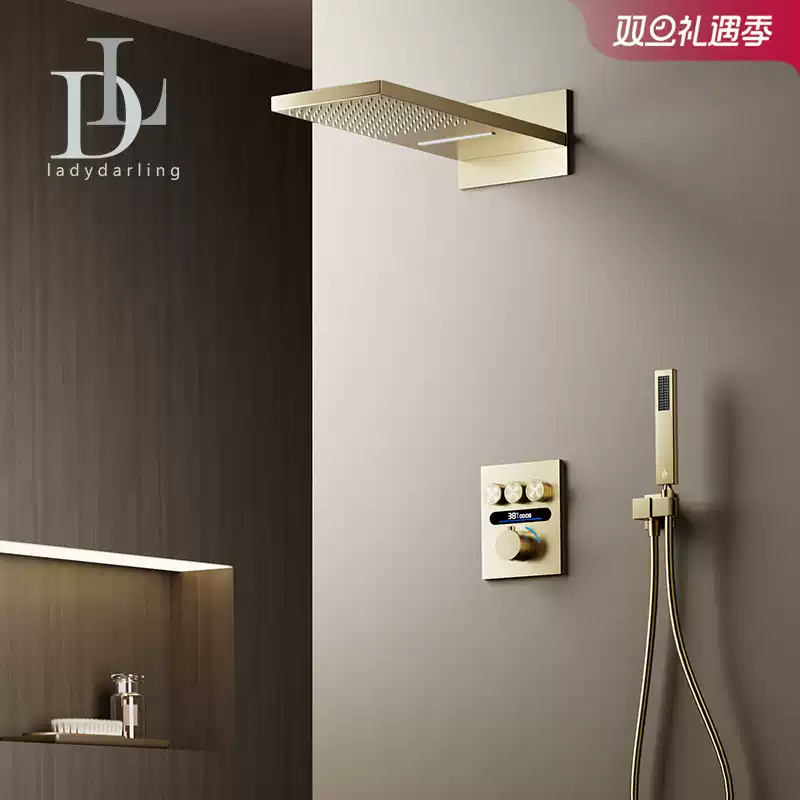 Hansgrohe Raindance Select E 240 Wall-Mounted Shower System with Thermostatic Valve and Gold Finish – Premium Bathroom Fixture for Modern Homes