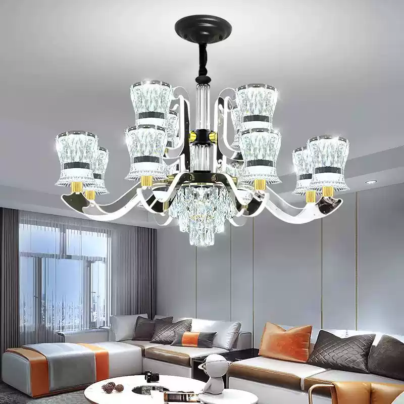 Modern Luxury Crystal Chandelier for Living Room – Elegant Ceiling Light Fixture with Adjustable Arms and Full Room Lighting Set