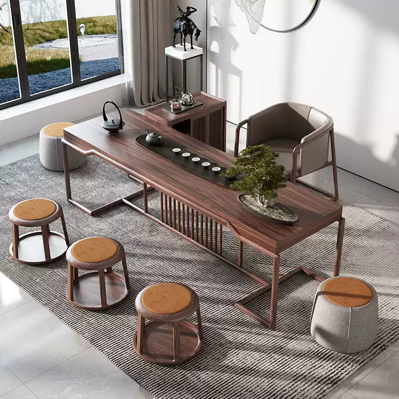New Chinese Style Solid Wood Tea Table Set with Zen-Inspired Design – Office and Home Tea Ceremony Furniture for Tea Brewing and Meditation