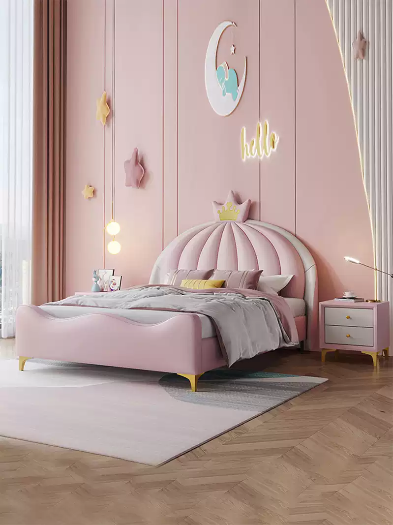 Modern Crown Princess Bed for Boys and Girls: Light Luxury Leather Upholstered Single Bed with Soft Headboard, Compact Size 1.5m, Ideal for Small Rooms