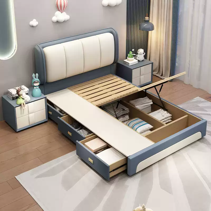 This 1.2m single bed is designed for small rooms, offering a compact and stylish solution for children’s bedrooms. Measuring 1.2 meters in width, it features a 1.35-meter storage bed design, making it ideal for boys and girls who need extra space for toys, clothes, or other belongings. The bed showcases a princess-style aesthetic with elegant curves, soft colors, and decorative elements that appeal to young users, promoting a cozy and imaginative sleep environment. Crafted from high-quality materials, it ensures durability and safety, with a sturdy frame that supports daily use. The integrated storage drawers provide practical organization, helping to keep the room tidy and clutter-free. This bed is perfect for urban homes with limited space, combining functionality with a charming design that encourages restful sleep and creative play. Easy to assemble and maintain, it meets the needs of modern families seeking efficient and attractive furniture options for kids’ rooms.