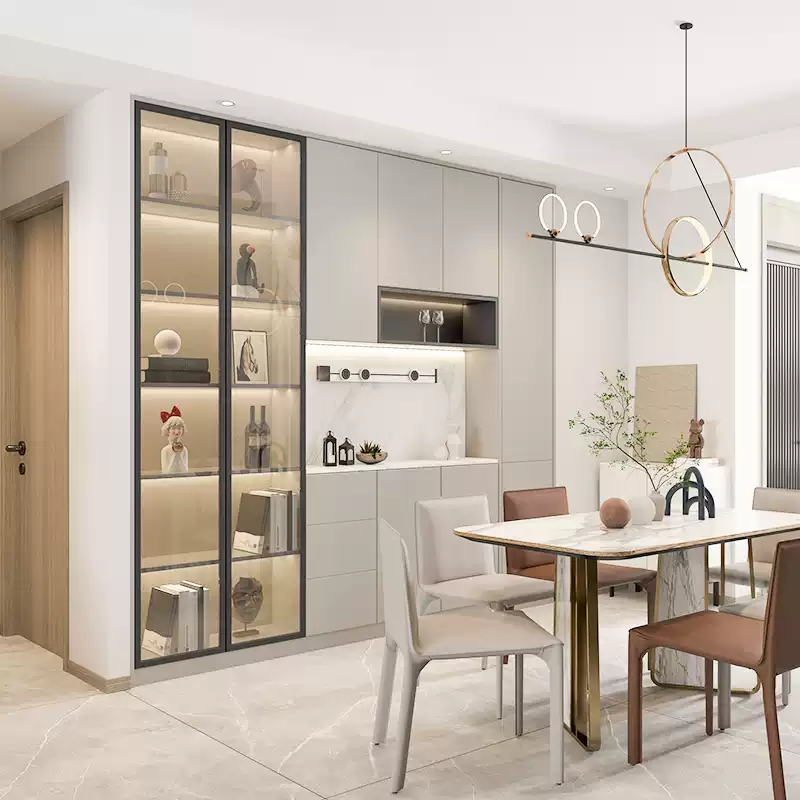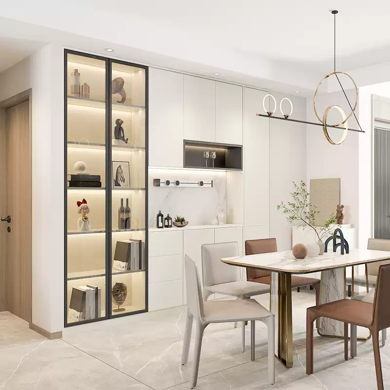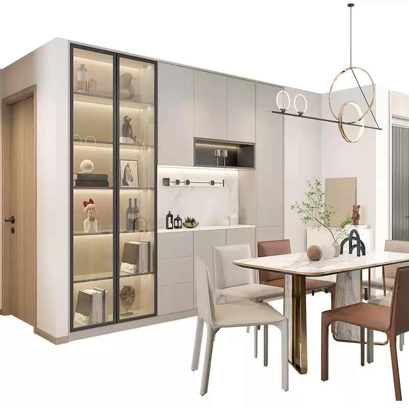 This customized modern living room dining cabinet set offers a luxurious and functional solution for contemporary homes, featuring a premium gold cabinet design that enhances elegance and style. Ideal for full house customization, it includes versatile pieces such as a dining room cabinet, kitchen cabinet, bar cabinet, and sideboard, all seamlessly integrated into a cohesive furniture combination. The set is crafted with high-quality materials, ensuring durability and a sleek finish that complements modern interior decor. Its modular design allows for flexible arrangement in various spaces, from living rooms to dining areas, providing ample storage and display options. The gold accents add a touch of sophistication, making it a standout addition to any home. This product is perfect for those seeking customized, stylish, and practical furniture solutions that optimize space and elevate the aesthetic appeal of their living environment. With attention to detail and modern craftsmanship, it meets the demands of today’s homeowners looking for premium, customizable cabinet sets.