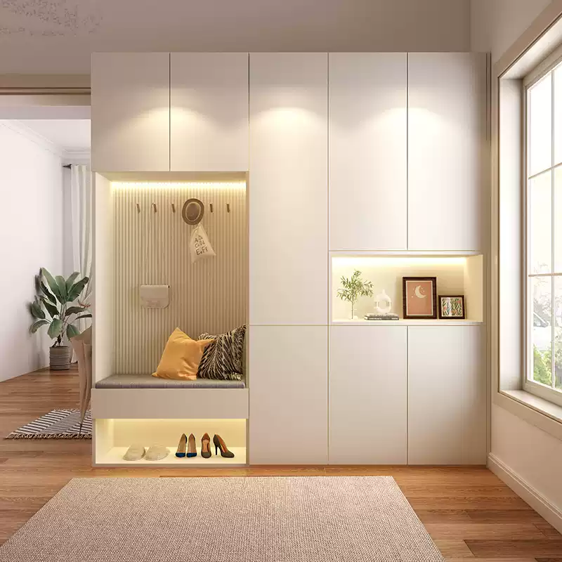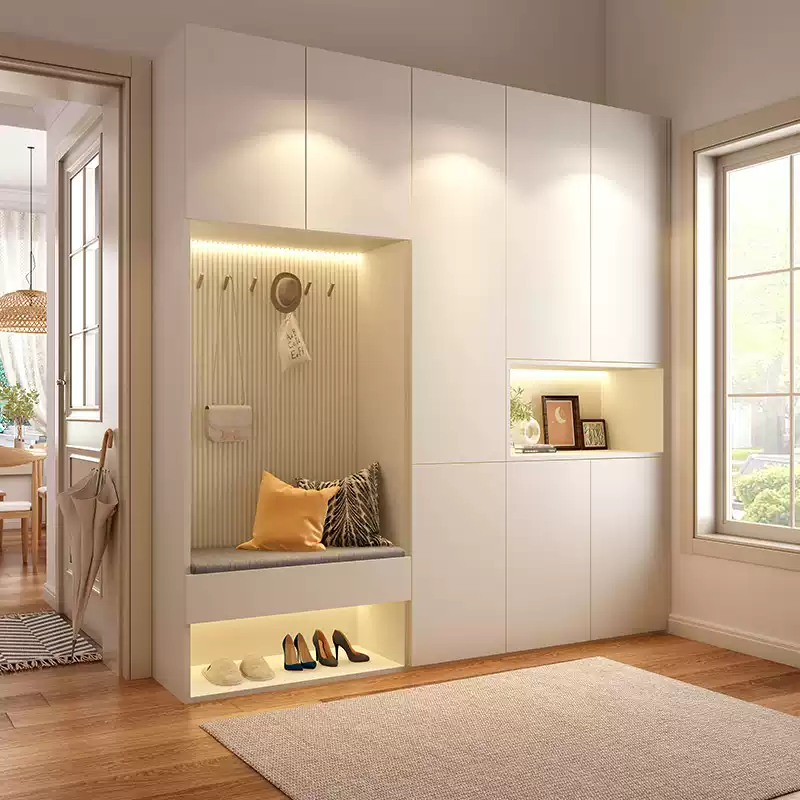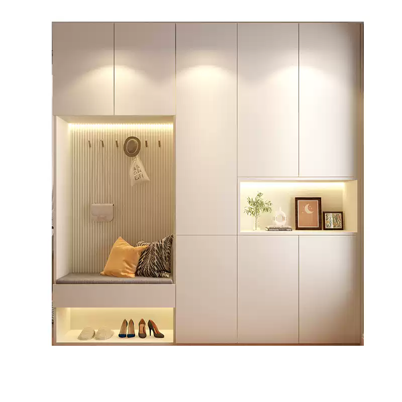 Customized Shoe Cabinet with Gold Accents – Modern Minimalist Wall-Mounted Entryway Storage Solution for Homes, Featuring Integrated Design and Space-Saving Features