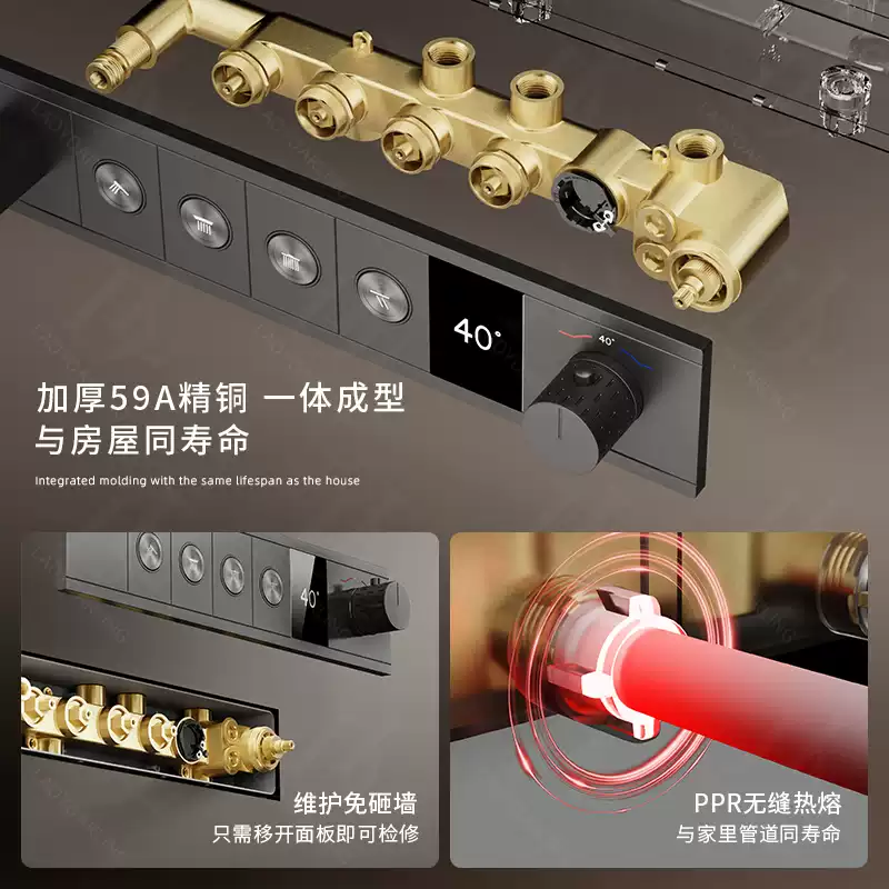 The Grohe Germany Raindance Shower System is a high-end, all-copper thermostatic concealed ceiling mounted rain shower head designed to deliver a luxurious and refreshing bathing experience. This premium shower system features a sleek, modern design with a dark finish that complements contemporary bathroom aesthetics, making it an ideal choice for homeowners seeking both style and functionality. Constructed from durable, heat-resistant all-copper materials, it ensures long-lasting performance and resistance to corrosion, providing reliable water flow and temperature control. The rain shower head offers a wide, gentle spray pattern that mimics natural rainfall, creating a soothing and immersive shower experience. With its high-pressure capabilities, it delivers consistent water flow even in low-pressure environments, enhancing water efficiency and comfort. The thermostatic technology allows for precise temperature regulation, preventing sudden fluctuations and ensuring a safe, comfortable shower every time. Easy to install and maintain, this concealed ceiling mounted system saves space and adds a minimalist touch to any bathroom. Perfect for residential use, it combines German engineering excellence with innovative features to elevate daily routines into moments of relaxation and luxury. Invest in this top-quality shower system for a durable, efficient, and stylish upgrade to your home bathroom.
