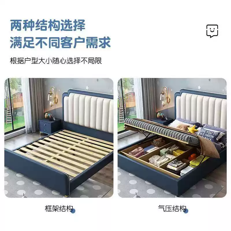 This 1.35-meter single bed is expertly designed for children and teenagers, featuring a compact and stylish American-inspired look that maximizes space in small rooms. Crafted with high-quality princess leather upholstery, it offers a soft, durable surface that is easy to clean and resistant to wear, making it perfect for active kids. The bed includes built-in storage compartments, providing convenient space for storing toys, books, and bedding, which helps keep the room organized and clutter-free. Its sturdy construction ensures long-lasting use, supporting the needs of growing youth from childhood through the teen years. The neutral color scheme and elegant design make it suitable for both boys and girls, blending seamlessly with various bedroom decors. Ideal for parents seeking a functional and aesthetic sleeping solution, this bed promotes comfort and safety with its low-profile frame and smooth edges. Enhance your child’s bedroom with this versatile piece that combines practicality with modern style, offering a cozy retreat for rest and play.