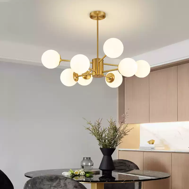 This exquisite full copper pendant light set features a modern molecular design, perfect for enhancing the ambiance of living rooms, dining rooms, and bedrooms. Crafted from high-quality copper, the chandelier showcases a durable and stylish construction with an industrial aesthetic, making it an ideal centerpiece for home decor. The molecular structure of the light creates a unique visual appeal, distributing soft and warm illumination that adds a cozy and sophisticated touch to any space. Designed for easy installation, this lighting set includes multiple pendant lights that can be arranged in various configurations to suit different room layouts. The copper finish provides a timeless look that complements both contemporary and traditional interiors, while the energy-efficient LED bulbs ensure long-lasting performance and reduced electricity costs. Ideal for homeowners seeking a statement piece, this chandelier combines functionality with artistic design, offering versatile lighting solutions for residential settings. Its robust build and elegant appearance make it a popular choice for those looking to upgrade their home lighting with a premium, eye-catching fixture.