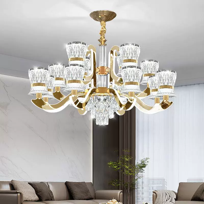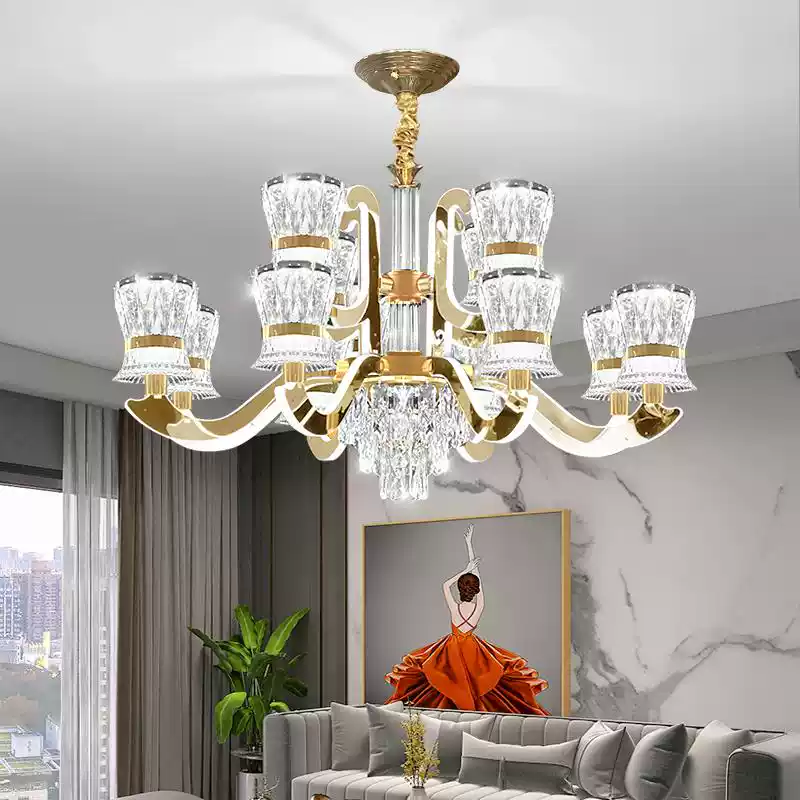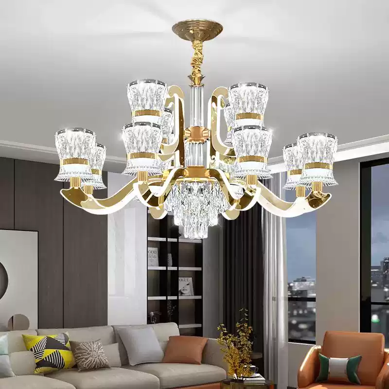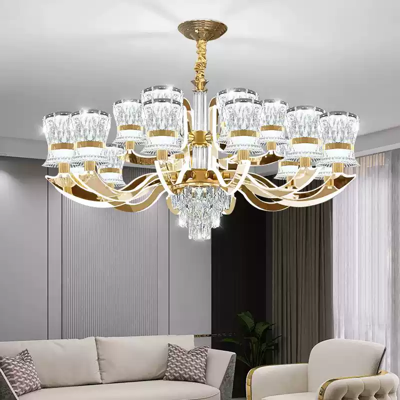 This exquisite modern luxury chandelier is designed to elevate the ambiance of any living room or large hall with its sophisticated and elegant style. Featuring a combination of crystal accents and sleek metallic finishes, it offers a high-end lighting solution that adds a touch of opulence to contemporary home decor. The chandelier includes adjustable arms with integrated LED lights, allowing for customizable illumination to suit various settings and moods. Its large and atmospheric design makes it an ideal centerpiece for spacious areas, providing both functional lighting and aesthetic appeal. Crafted from durable materials, it ensures long-lasting performance and easy maintenance. This full-room lighting set is perfect for those seeking a modern, luxurious, and versatile lighting fixture that enhances the overall look and feel of their home.