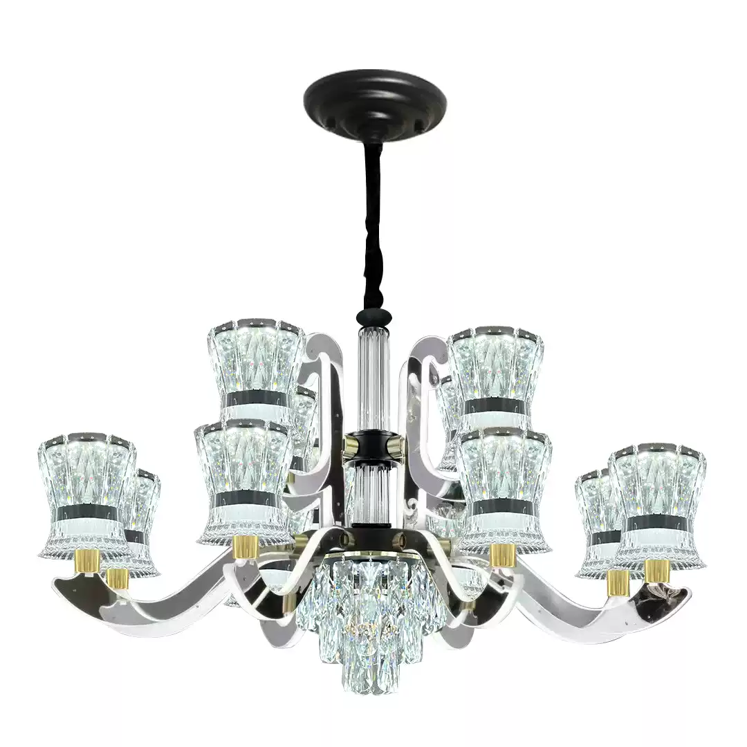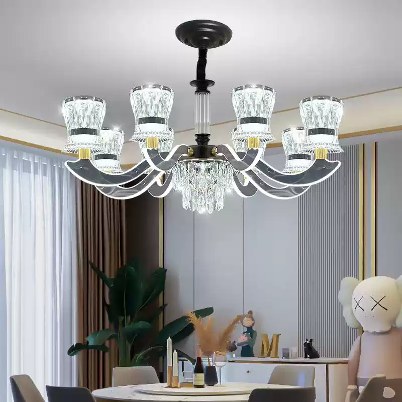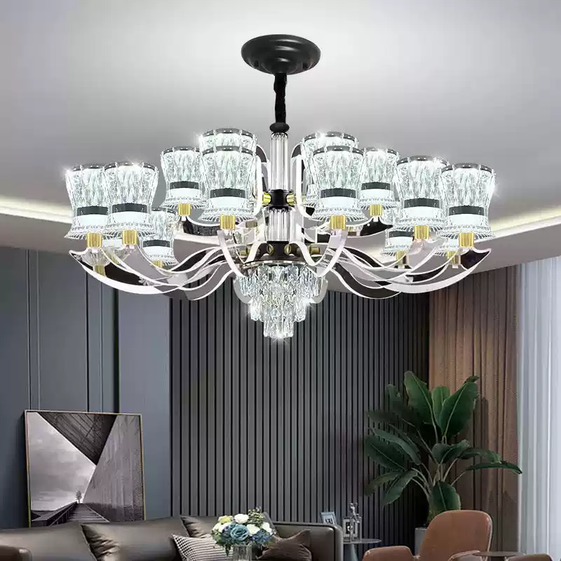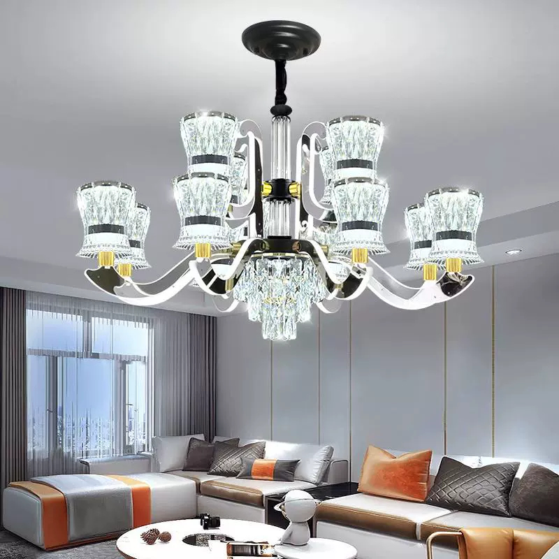 This exquisite modern luxury crystal chandelier is designed to elevate the ambiance of any living room, dining area, or large hall with its sophisticated and contemporary style. Featuring a stunning combination of crystal elements and sleek metallic finishes, this ceiling light fixture exudes elegance and high-end appeal. The adjustable arms allow for customizable lighting arrangements, ensuring optimal illumination and visual impact. Perfect for modern homes seeking a touch of luxury, this chandelier serves as a statement piece that enhances interior decor with its atmospheric glow and refined design. Ideal for full-room lighting sets, it provides comprehensive coverage while adding a glamorous touch to spacious areas. Crafted with attention to detail, it combines functionality with aesthetic appeal, making it a top choice for those who appreciate quality and style in lighting solutions.