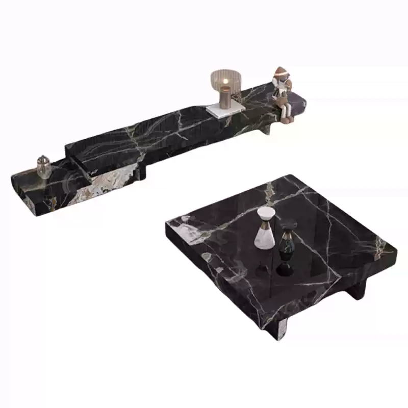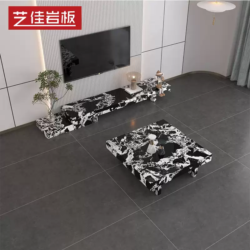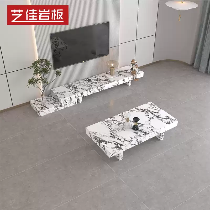 This modern minimalist TV console combines a television stand, tea table, and storage unit into one sleek, space-saving piece of furniture, ideal for small living rooms or compact homes. Featuring a stone-like finish that adds a contemporary and elegant touch, this console is designed with clean lines and a neutral color palette to blend seamlessly into various interior styles. The integrated design includes multiple storage compartments, such as drawers and shelves, providing ample space to organize media equipment, books, and other household items, reducing clutter and enhancing functionality. Made from durable materials, it offers stability and longevity, while its compact size makes it perfect for apartments, studios, or any area where maximizing space is essential. The addition of a built-in tea table adds convenience for entertaining or daily use, making it a versatile and practical choice for modern living. This all-in-one furniture piece not only saves floor space but also creates a cohesive and stylish look in your home, promoting an organized and minimalist lifestyle. With its multifunctional features and aesthetic appeal, it is an excellent investment for those seeking efficient and attractive home solutions.