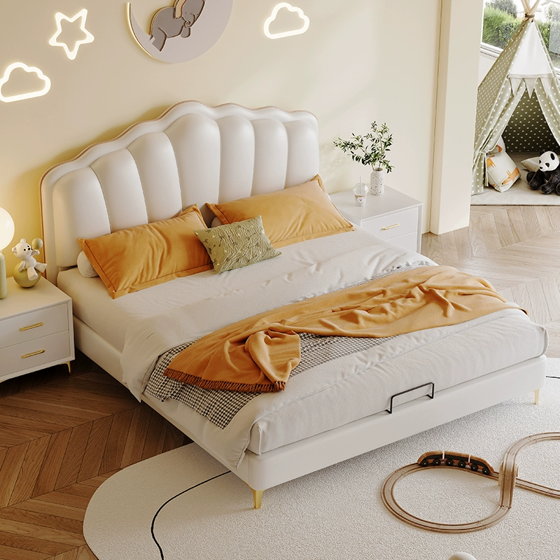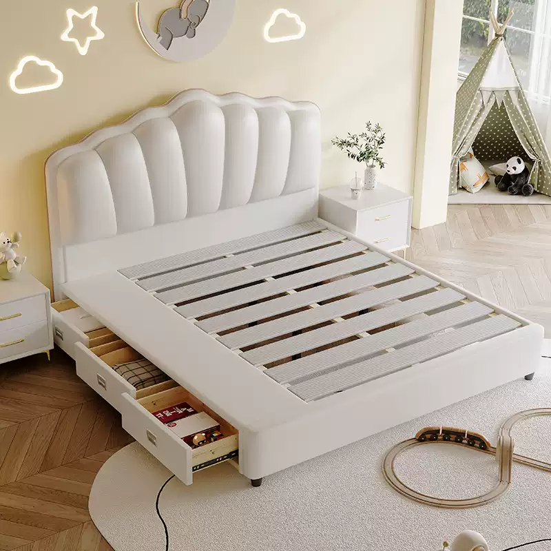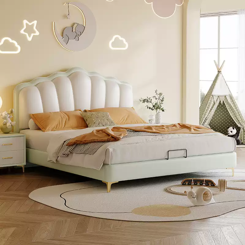 This compact single bed is designed specifically for children, featuring a modern princess-style aesthetic that appeals to both boys and girls. With dimensions of 1.35 meters, it is perfect for small bedrooms, offering a space-saving solution without compromising on comfort or style. The bed boasts a light luxury design, characterized by a soft upholstered headboard that provides excellent back support and a cozy feel. Its neutral color palette and elegant lines make it versatile for various room decors, from minimalist to playful themes. Crafted from high-quality materials, this bed ensures durability and safety, with smooth edges and a sturdy frame. The compact size makes it easy to assemble and fit into tight spaces, while the luxurious upholstery adds a touch of sophistication. Ideal for kids aged 3-12, this bed promotes healthy sleep habits with its ergonomic design. It is also easy to clean and maintain, thanks to the durable fabric cover. Enhance your child’s bedroom with this stylish and functional bed that combines practicality with aesthetic appeal, creating a dreamy sleep environment.
