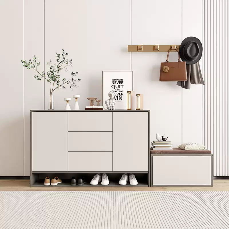 This wall-mounted shoe cabinet is a versatile and space-saving entryway solution designed for modern homes. Featuring a sleek, minimalist style with clean lines and a neutral color palette, it seamlessly integrates into any interior décor. The cabinet includes a built-in bench for convenient seating while putting on or taking off shoes, enhancing functionality in high-traffic areas like entryways. Made from durable materials, it offers ample storage compartments to organize shoes neatly, reducing clutter and maintaining a tidy appearance. Its customizable design allows for adjustments to fit specific space requirements, making it ideal for apartments, condos, or houses. Easy to install and maintain, this product combines practicality with aesthetic appeal, promoting an organized and stylish living environment. Perfect for families or individuals seeking efficient home storage, it supports daily routines by providing easy access to footwear and accessories. The robust construction ensures long-term use, while the contemporary look adds a touch of elegance to your home’s entrance.
