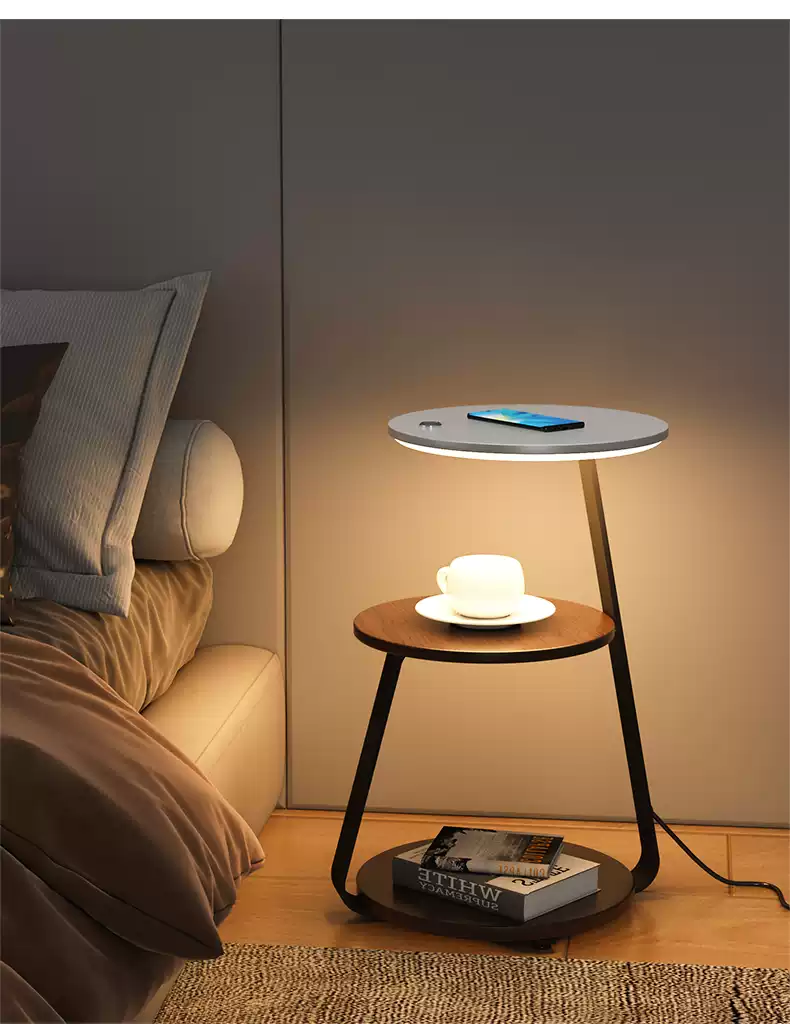 This wireless charging floor lamp combines functionality and elegance, designed to enhance bedroom ambiance with its contemporary minimalist style. Featuring a sleek tea table design, it serves as a versatile bedside nightstand lamp, providing soft, ambient lighting perfect for creating a cozy and relaxing atmosphere in the bedroom. The lamp is equipped with a built-in wireless charging pad, allowing for convenient charging of compatible devices like smartphones without the clutter of cords. Its modern aesthetic, characterized by clean lines and a neutral color palette, seamlessly integrates into various interior decor styles, from modern to Scandinavian. The sturdy base ensures stability, while the adjustable lighting settings offer customizable brightness levels to suit different moods and activities, such as reading or winding down. Ideal for bedrooms, living rooms, or home offices, this lamp not only illuminates spaces but also adds a touch of sophistication with its innovative design. Made from high-quality materials, it promises durability and energy efficiency, making it a practical and stylish addition to any home. Enhance your home lighting with this multifunctional floor lamp that blends technology and design for a seamless user experience.
