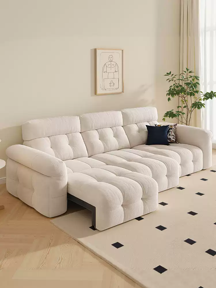 This versatile electric reclining fabric sofa bed is designed for modern living spaces, offering exceptional comfort and functionality. Crafted with high-quality materials, it features a soft, durable cream-colored upholstery that complements various interior styles from minimalist to cozy. The sofa includes multiple electric reclining positions, allowing users to adjust the backrest and footrest effortlessly for optimal relaxation, whether reading, watching TV, or napping. Its innovative design transforms into a full-sized bed, making it ideal for small apartments, guest rooms, or studios where space is limited. Additional features include a built-in chaise lounge for extended lounging, sturdy metal frame construction for longevity, and easy-to-clean fabric that resists stains and wear. The compact and extendable nature ensures it fits seamlessly into tight corners while providing ample seating and sleeping space. With user-friendly controls and smooth operation, this sofa bed enhances everyday living by combining style, comfort, and practicality. Perfect for those seeking a multifunctional furniture piece that saves space without compromising on luxury.