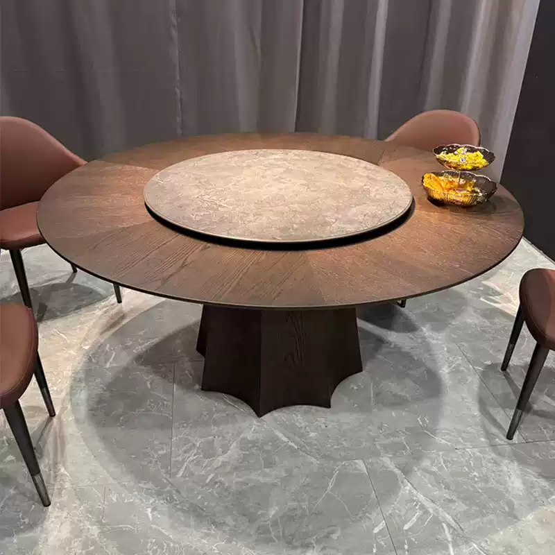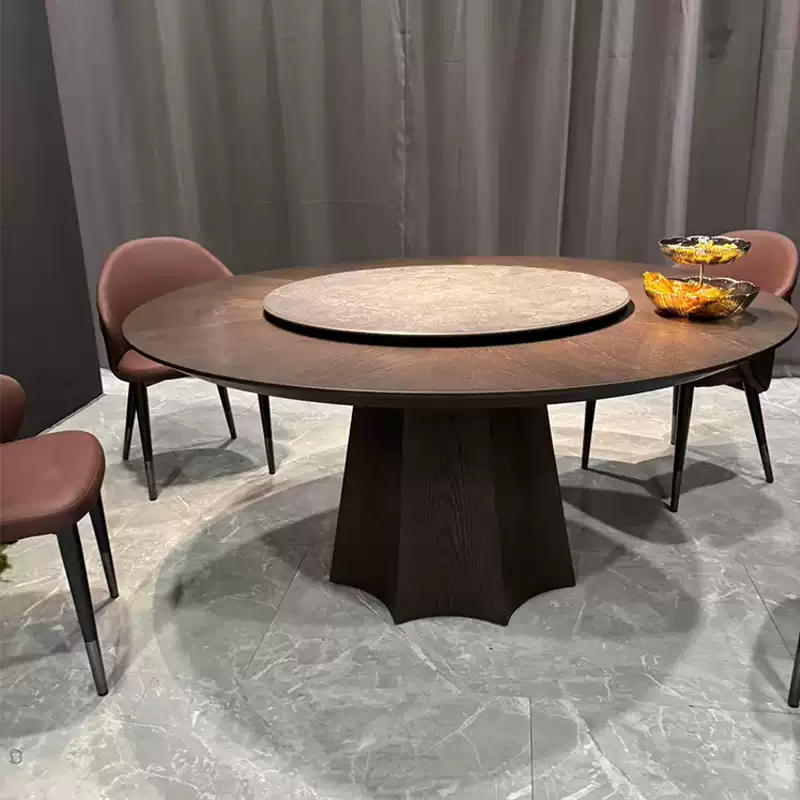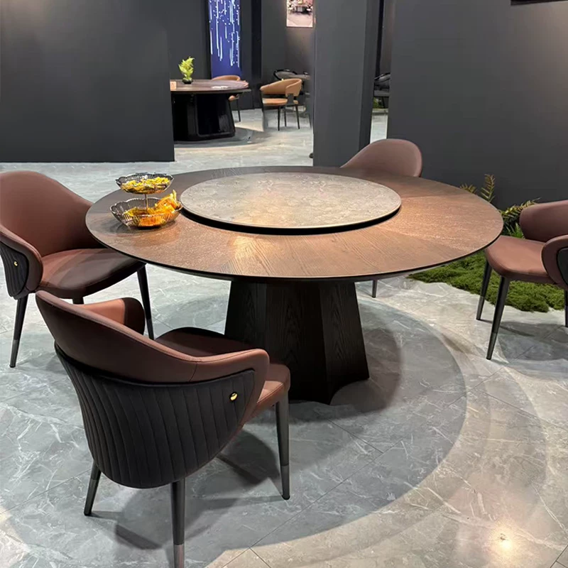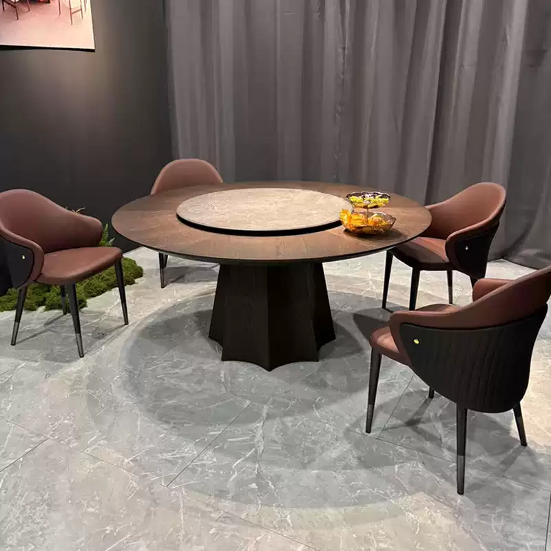 This Nordic solid wood minimalist luxury hotel slate electric dining table is a premium home furniture piece designed for modern living spaces. Featuring a large round tabletop made from high-quality solid wood, it exudes elegance and durability, perfect for family gatherings or entertaining guests. The table includes a built-in electric mechanism with a swivel base, allowing for easy rotation and adjustment to suit various dining needs. The slate accents add a touch of industrial chic, blending seamlessly with the minimalist design. Ideal for home use, this round dining table and chairs set offers both functionality and style, with a focus on comfort and aesthetic appeal. The lightweight yet sturdy construction ensures long-lasting performance, while the neutral color palette complements a wide range of interior decors. Enhance your dining experience with this versatile and sophisticated furniture set.