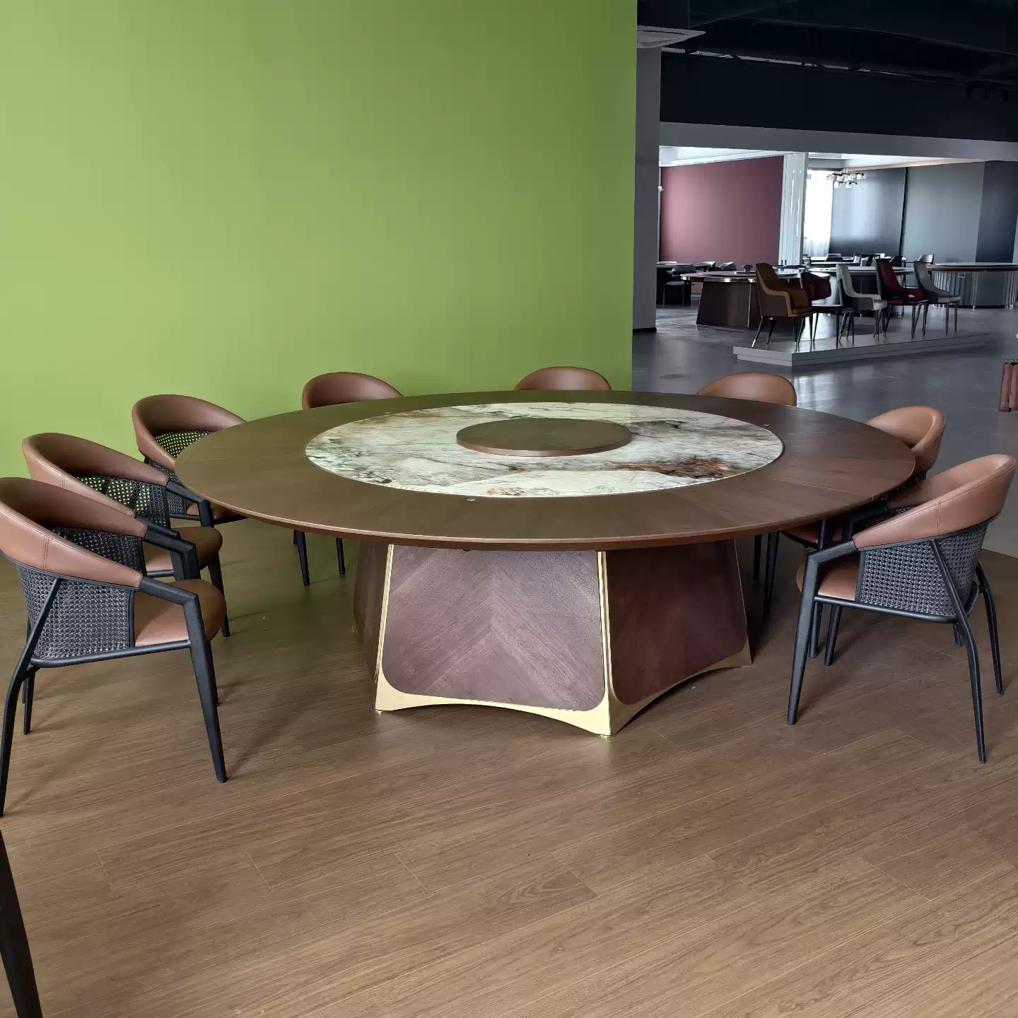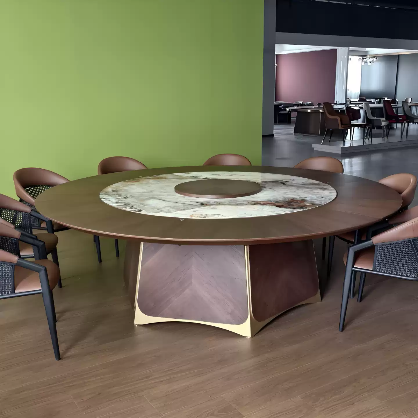 This exquisite 20-seater electric rotating dining table combines luxury, functionality, and modern design, making it an ideal centerpiece for high-end homes, upscale restaurants, and premium hotel settings. Crafted with a durable rock board surface, the table features a built-in parallel rotating turntable (lazy Susan) that ensures smooth and effortless serving, allowing all guests to easily access dishes without disruption. The electric mechanism provides quiet and reliable operation, enhancing convenience during meals and gatherings. Its spacious circular design accommodates up to 20 people comfortably, promoting social interaction and elegant dining experiences. The table’s sophisticated color palette and sleek finish complement various interior styles, from contemporary to classic, adding a touch of refinement to any space. Constructed with high-quality materials, it offers long-lasting durability and easy maintenance, making it a practical investment for both residential and commercial use. This product is designed to elevate dining occasions, whether for family dinners, business meetings, or special events, by combining advanced technology with timeless aesthetics. Its SEO-optimized features include keywords such as electric dining table, rotating table, large capacity, luxury furniture, and rock board material, ensuring visibility for customers seeking premium dining solutions.