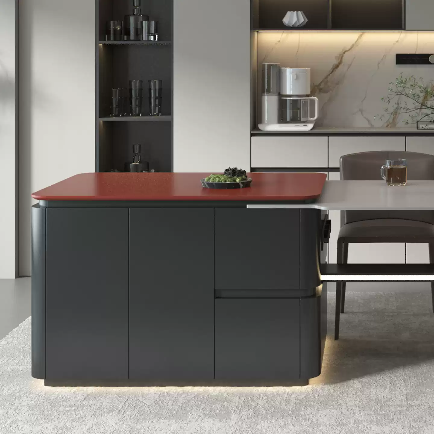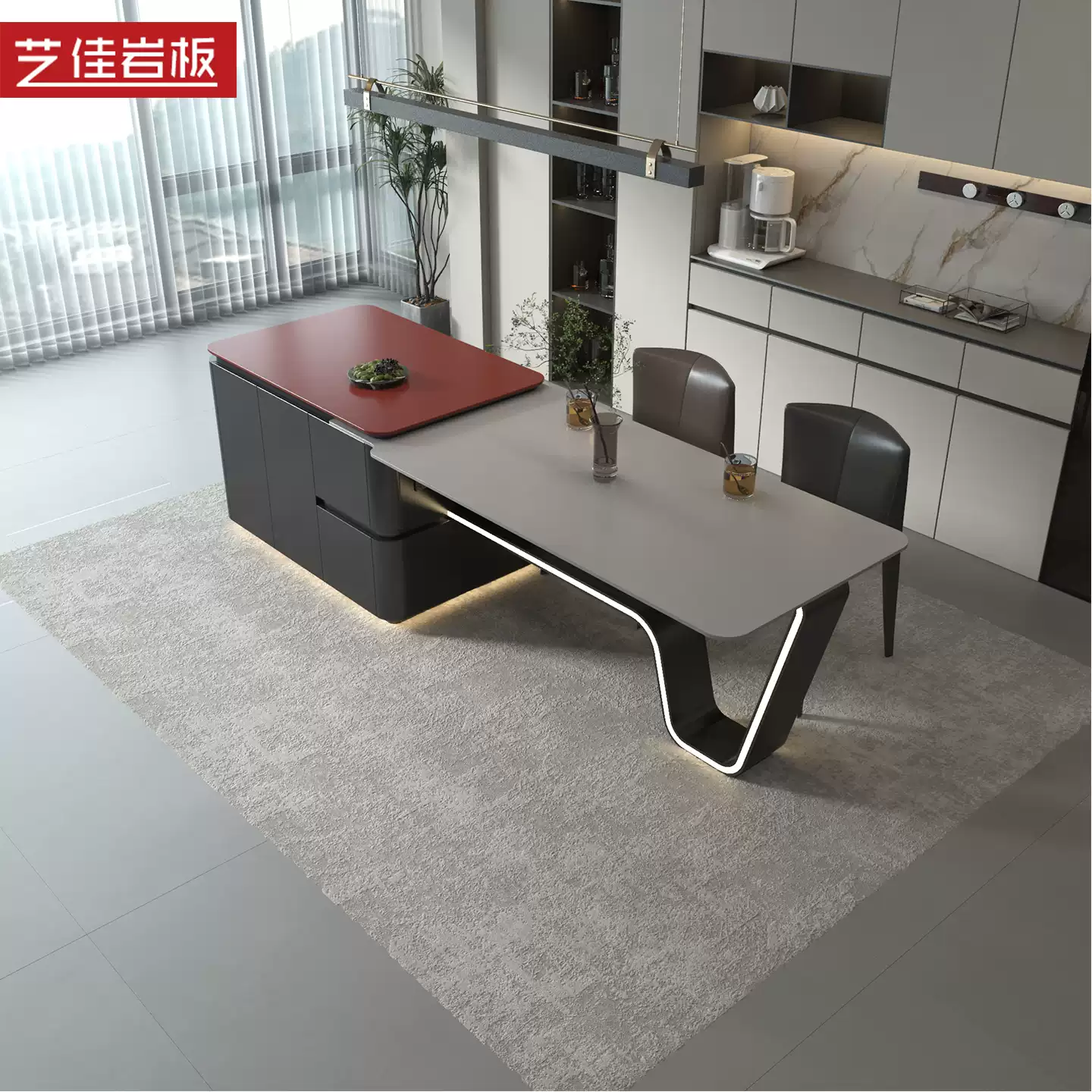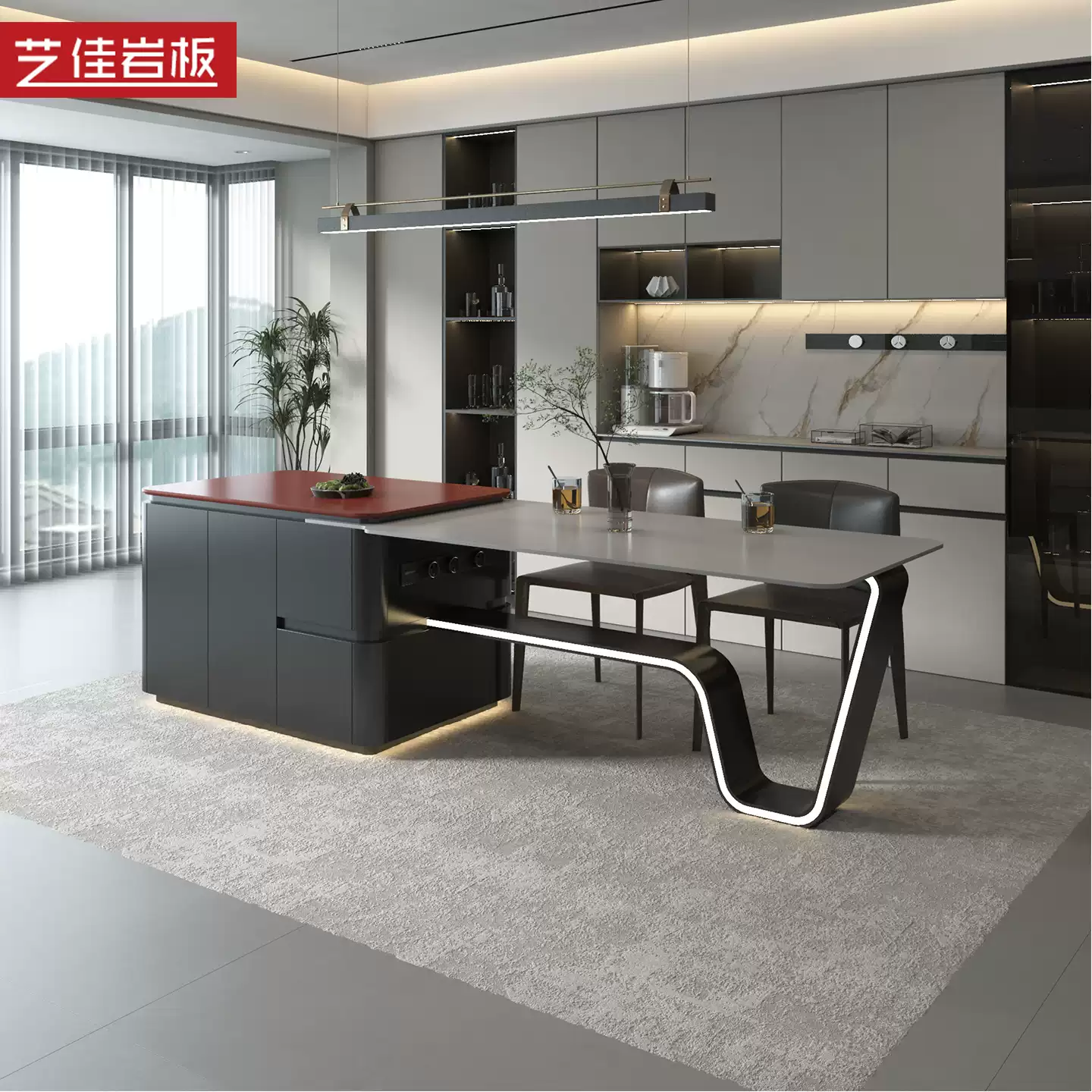 This exquisite dining table features a sleek and minimalist design, crafted with a durable metal frame and a stunning gold finish that adds a touch of luxury to any dining area. The table incorporates an integrated bar cabinet, providing convenient storage for beverages and dining essentials, making it ideal for both home and commercial restaurant settings. Its round arc shape enhances aesthetic appeal while promoting a cozy and intimate dining experience. The high-quality baked paint ensures long-lasting durability and resistance to wear, suitable for daily use in upscale environments. Customizable options allow for personalization to match various interior styles, from modern to classic. This piece combines functionality with elegance, offering a versatile solution for dining rooms, bars, or cafes, and is designed to impress with its sophisticated craftsmanship and attention to detail.