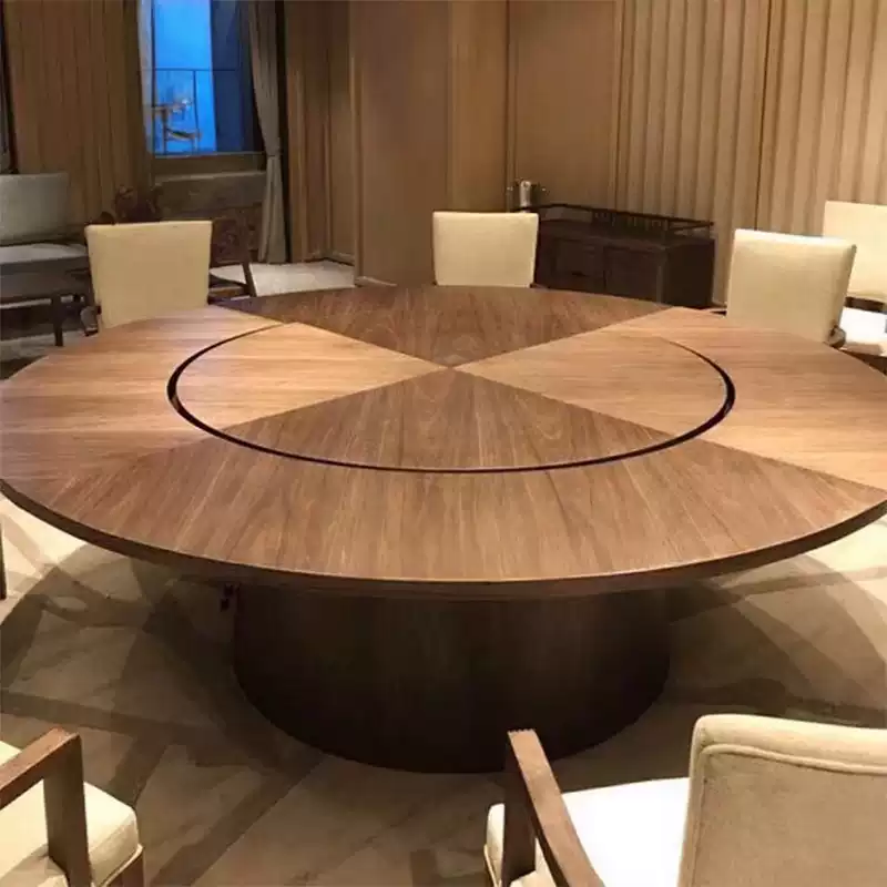 New Chinese Style Electric Large Round Table and Chair Set for Hotel and Restaurant, 15/20 Person Capacity, Fully Automatic Rotating Dining Table with Complete Package
