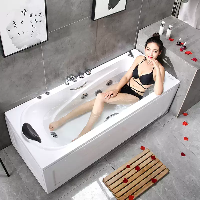 Compact Acrylic Bathtub with Double Skirt Edge and Wave Massage Function for Hotel, Homestay, Beauty Spa, and Home Use, Featuring Insulation and Space-Saving Design