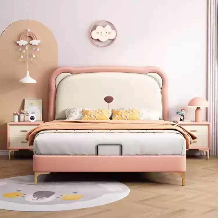 Adorable Bear-Themed Children’s Bed with Princess Canopy – 1.35m Single Bed for Boys and Girls, Compact Design for Small Rooms, High-Quality Leather Upholstery