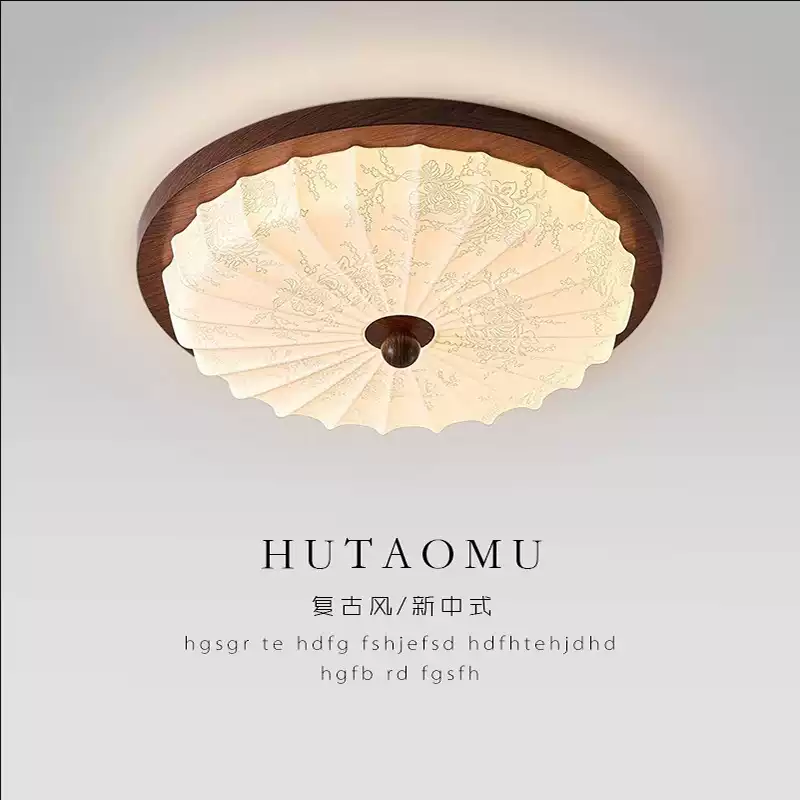 Retro bedroom lamp full-spectrum eye protection New Chinese-style ceiling lamp Round walnut Song Dynasty room study smart lamp