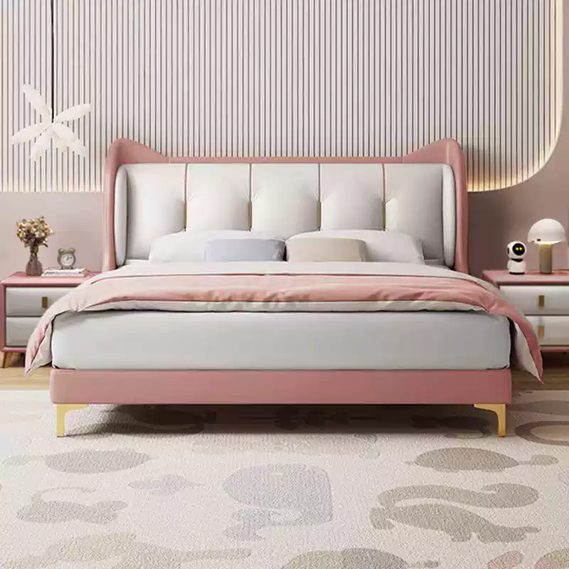 Soft Plush Cat Ear Bed Headboard – Modern Kids Single Bed with Dual-Person Option for Small Spaces, Ideal for Students and Children’s Bedrooms