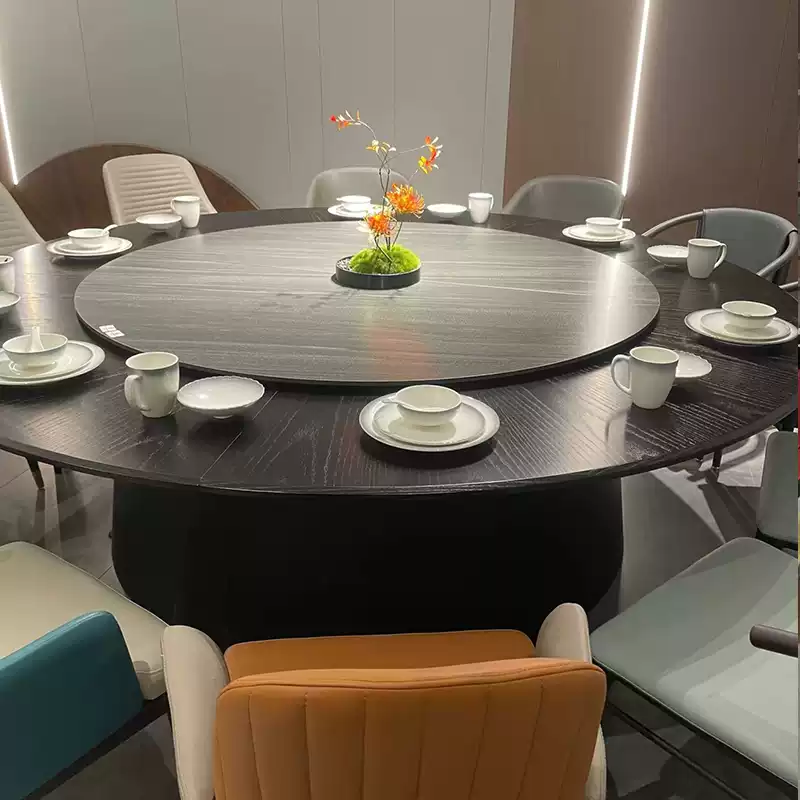 Premium Electric Rotating Round Dining Table for 15-20 People, High-End Commercial Restaurant Hotel Banquet Hall with Durable Marble Top and Elegant Design