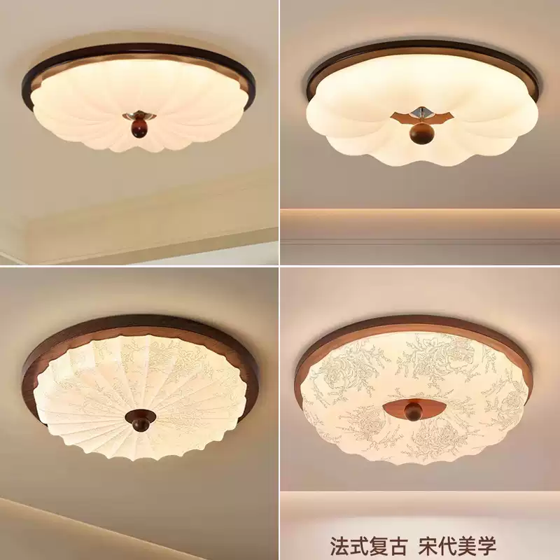 Ancient style master bedroom light New style French cream style round pumpkin walnut retro room ceiling light