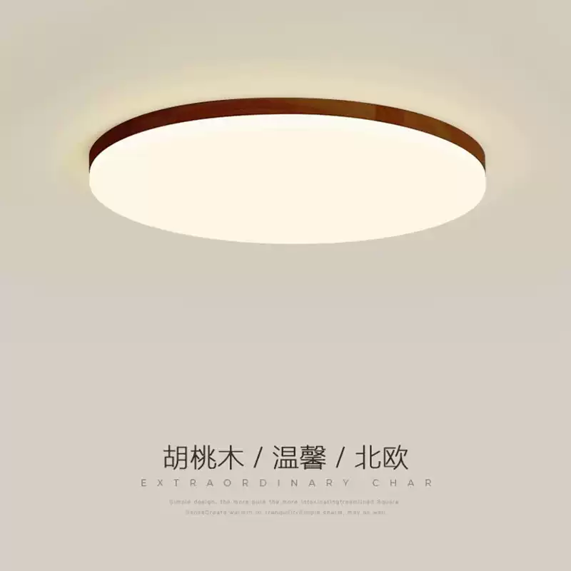 Bedroom lamp Walnut solid wood ceiling lamp 2025 New Chinese style modern simple ultra-thin round room corridor balcony lamp
