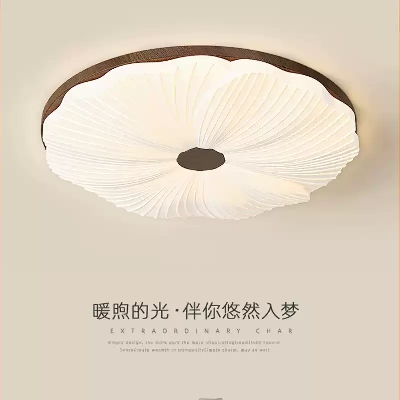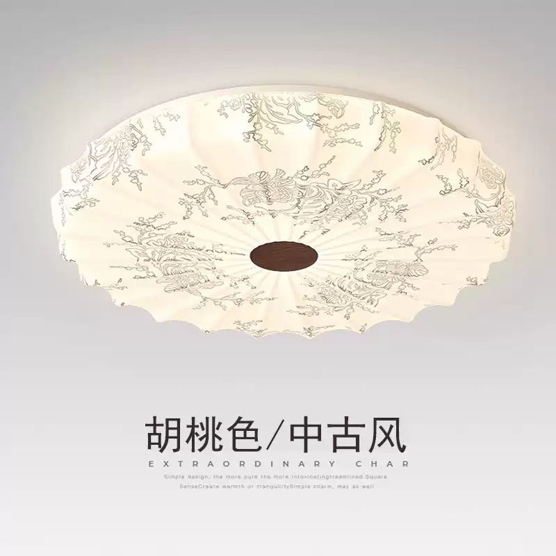 Bedroom ceiling lamp simple, antique style retro round walnut flower master bedroom lamp Quiet wind room lamp 2025