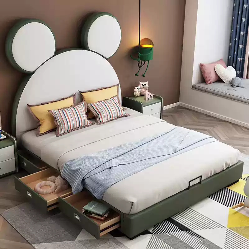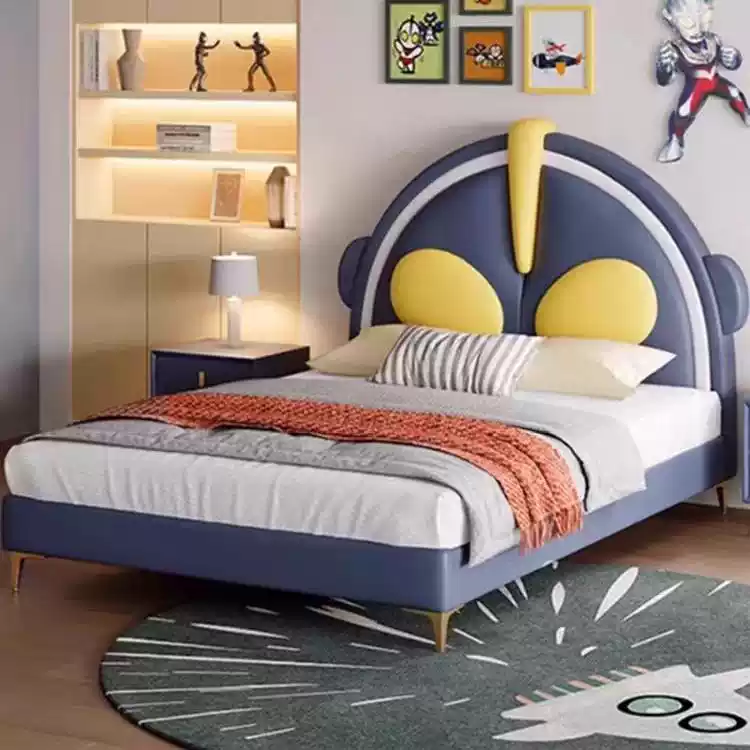Bed Cartoon Children’s Bed 1.35m Single Bed for Boys and Girls Princess Bed Wash-Free Technology Fabric Mattress Soft Bed