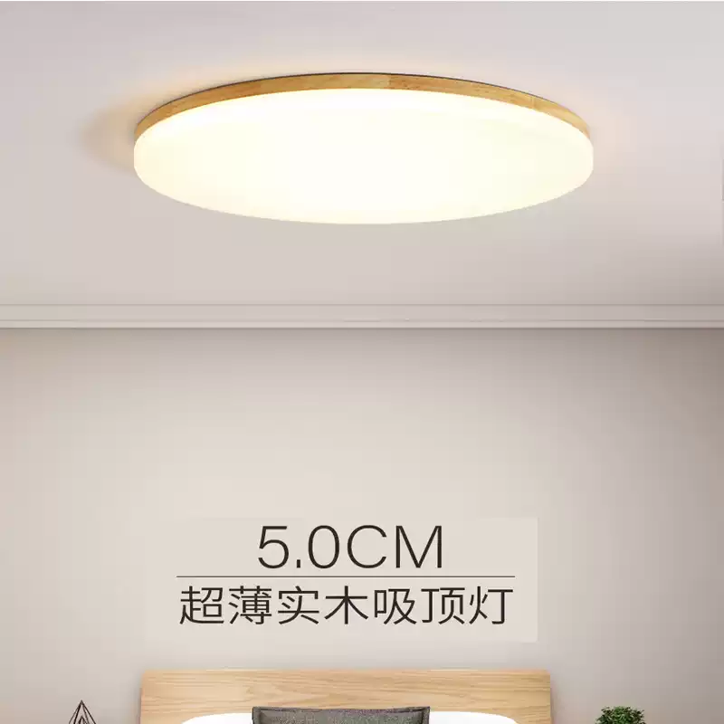 Bedroom lamp New raw wood ceiling lamp Nordic simple ultra-thin solid wood round led corridor balcony lamp Zhongshan