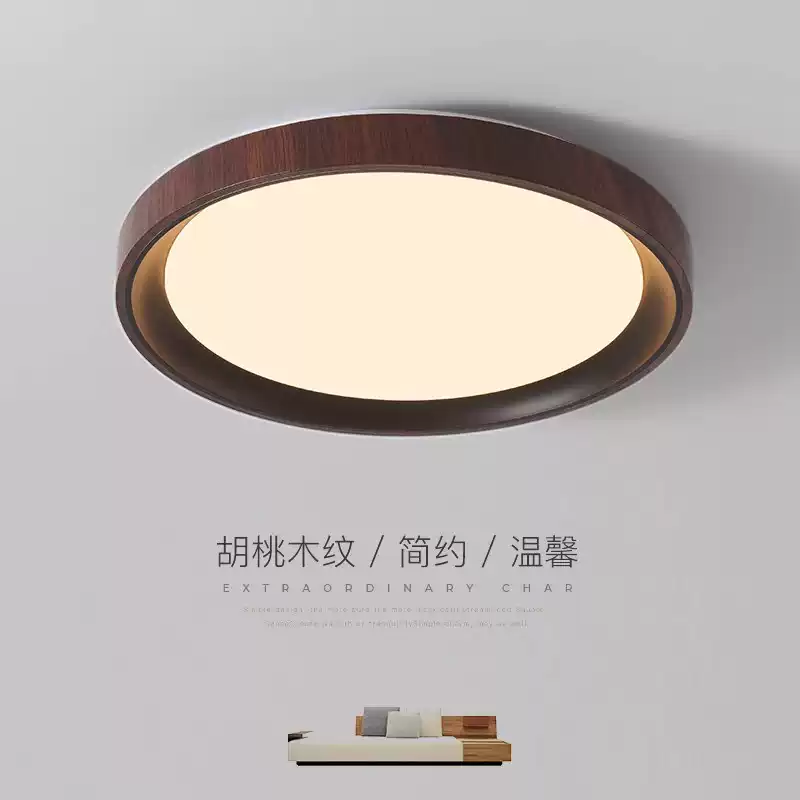 Bedroom lamp Walnut wood grain color ceiling lamp Medieval style simple new Chinese style round wind silent room Zhongshan lamp