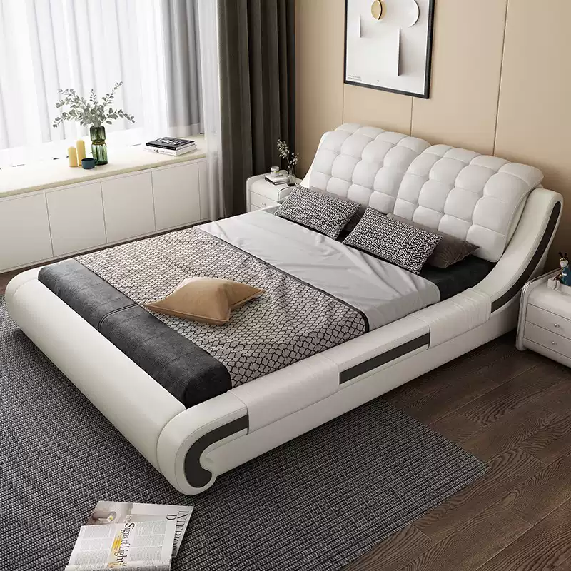 Modern Minimalist Leather Bed 1.8m King Size Master Bedroom Double Bed with 1.5m Single Bed Option, Italian Style Soft Bed Frame for Home Decor