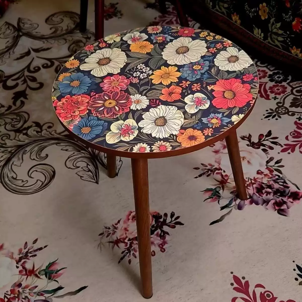 Nordic Style Round Side Table with Geometric Patterns – Compact Bedside, Living Room, and Corner Accent Table in Natural Wood Finish