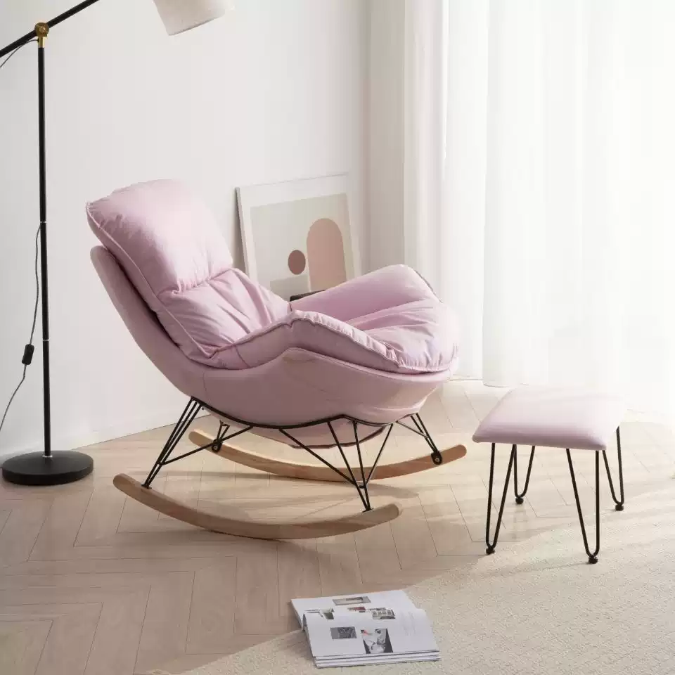 Nordic Balcony Leisure Chair, Modern Rocking Chair for Home, Lazy Sofa with Tech Fabric, Red Dragon Chair for Living Room, Afternoon Nap Lounger, Internet Celebrity Furniture
