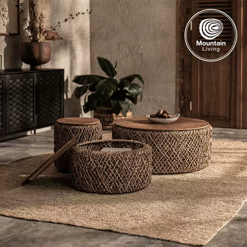 Mountain Living Imported Rattan Woven Round Tea Table – Handcrafted Natural Rattan Coffee Table with Wooden Frame for Living Room and Home Decor